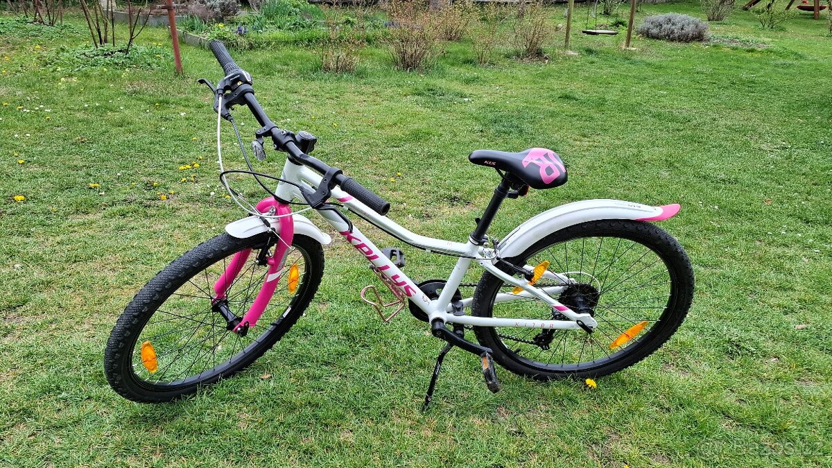 Prodám zachovalé dětské dívčí kolo Kellys Kiter 30, velikost kol 24. Kolo je pro děti ve věku cca 7-11let (120-150)cm. Rám z hliníkové slitiny, řazení Shimano Revoshift se 7 převody. Pár drobných odděrků, jinak bez investic. Málo jeté, najeto cca 400km.