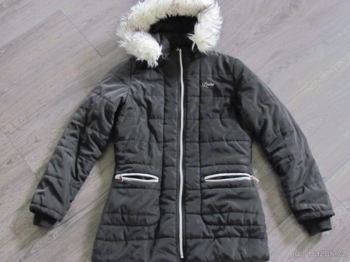 Nošená bundička, kapuci lze odepnout je na zip kožíšek taky ,potisky už nejsou 100%,nic strašného a u zipu chybí pouto na jezdci dá se nahradit bez pásku nemohu dohledat, ale u nás se nosila pouze bez něj.je teplá jen tak neprofoukne a nepromokne.