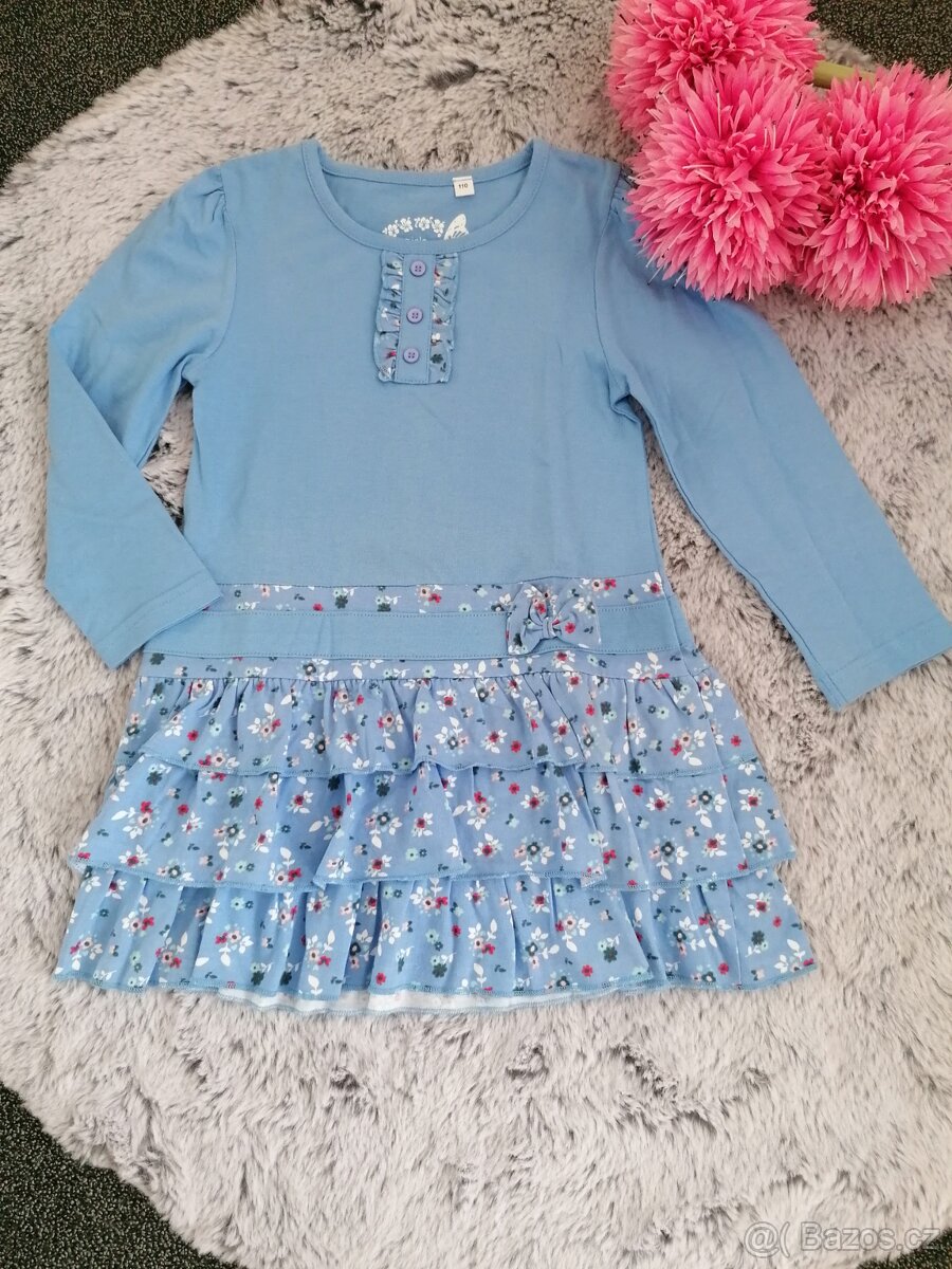 Naprosto úžasné dívčí šaty s dlouhým rukávem, objednané z BonPrixu, vel.110. Jsou krásné modré barvy, jako nové, dcera měla jen 1x na focení ve školce. Mrkněte i na mé ostatní nabídky, nabízím toho více!