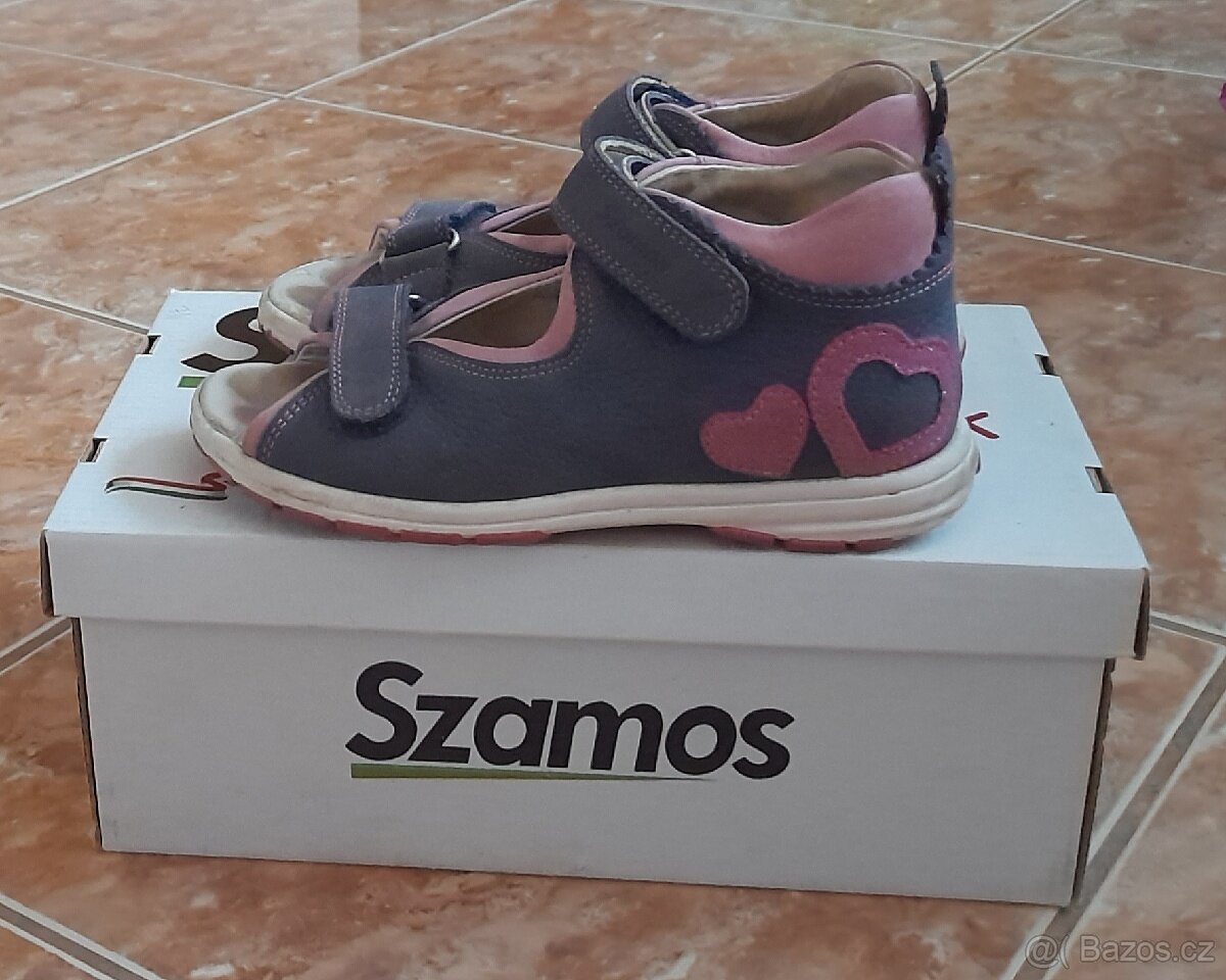 Celokožené certifikované sandálky v krásném stavu, kupované nové, nošené jen dcerou jednu sezónu. Barva je džínově modrá, zn.Szamos. Délka vnitřní stélky je 19 cm a šířka 7,5 cm.