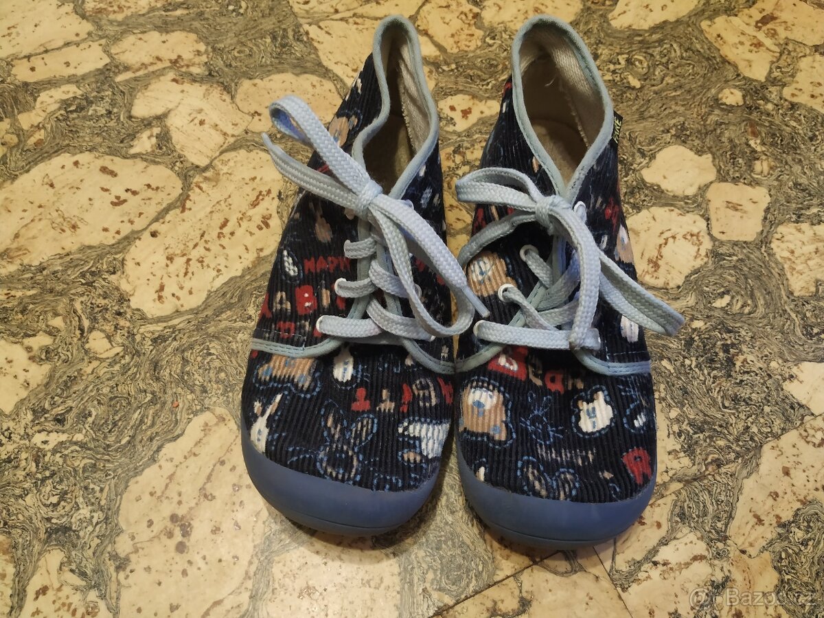 Modré bačkory na tkaničku Fare, v. 30 - [6.4. 2026]Prodám pěkné bačkory na tkaničku české značky Fare. Velikost 30. Kolem kotníku známky nošení, v dobrém stavu. Vřele doporučuji!