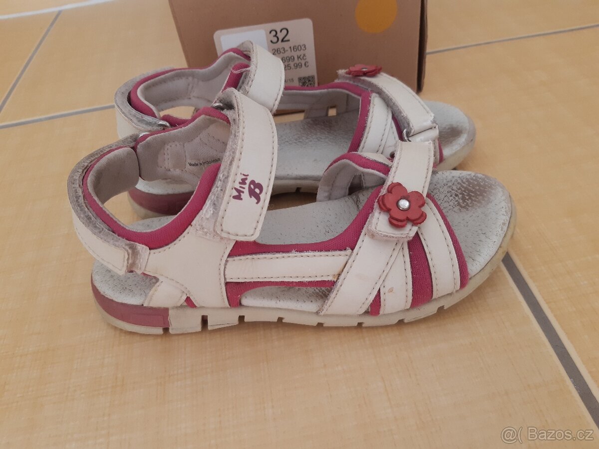 Dívčí sandálky zn. Baťa. Délka stélky je 19,5 cm. Odpovídá velikosti 30 (byť je na krabici uvedeno 32).
