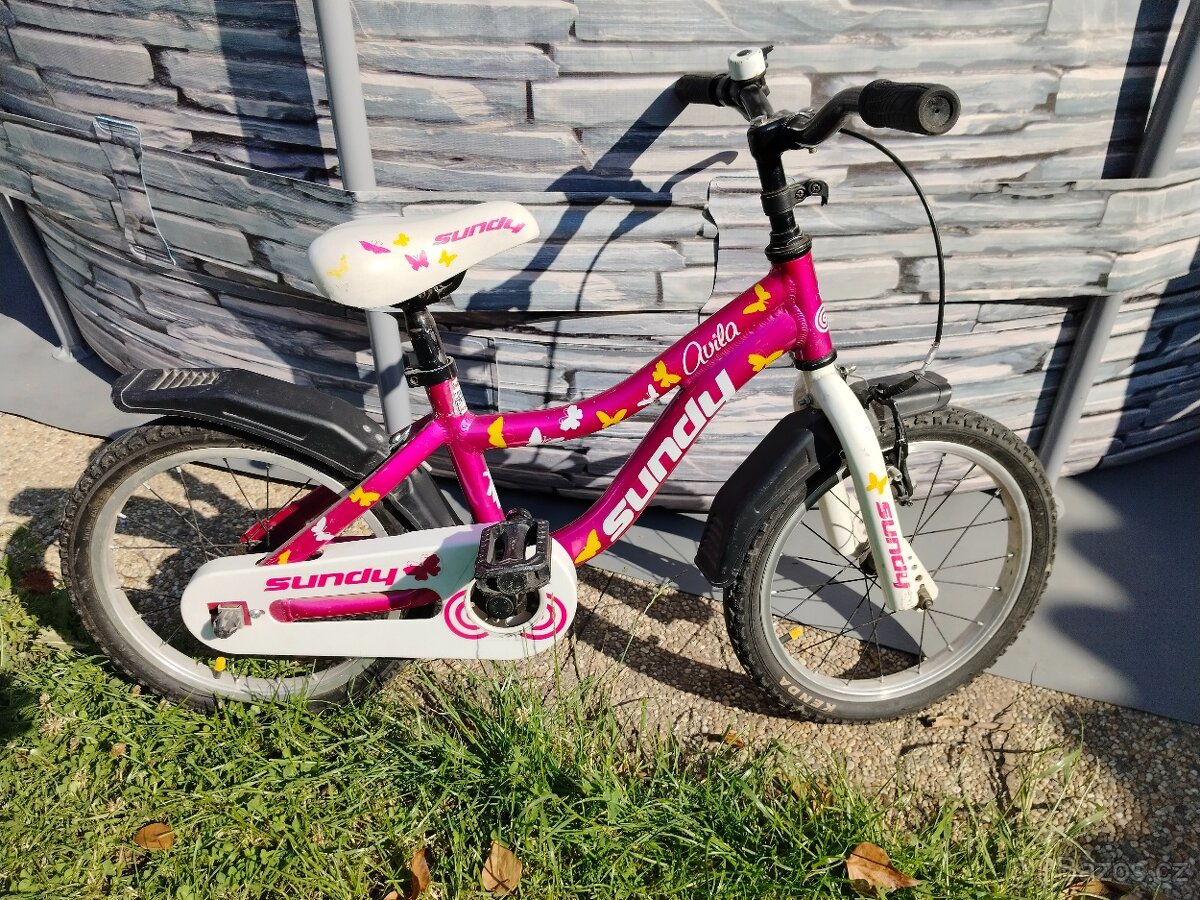 Prodám fialové dětské kolo Sundy. Velikost 16. Cena 2000Kč. Pro dítě od 4 do 7 let. Ke kolu jsou pomocné kolečka a držadlo na naučení se jezdit za 500Kč.